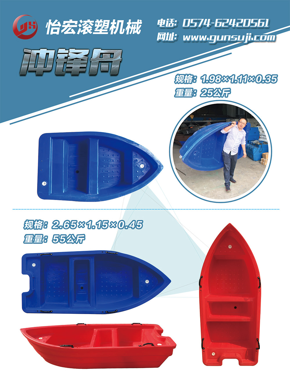 • 不用一根木材、一塊鋼板的聚乙烯船艇在制造過程中最大的特點就是一次成型,船體上沒有任何接縫。“制造聚乙烯船最先要擁有自己的模具,一個好的模具從設計到制造需要幾十次甚至幾百次的修整,而一旦成型制造出來的船基本上成功率在百分之一百,怡宏滾塑擁有全球最新的行業動向和船身穩定計算模型,能根據客戶需求實際用途完成整船設計制造。”